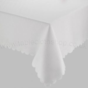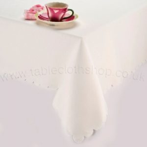 Made from 100% Polyester with a classic scalloped edge.