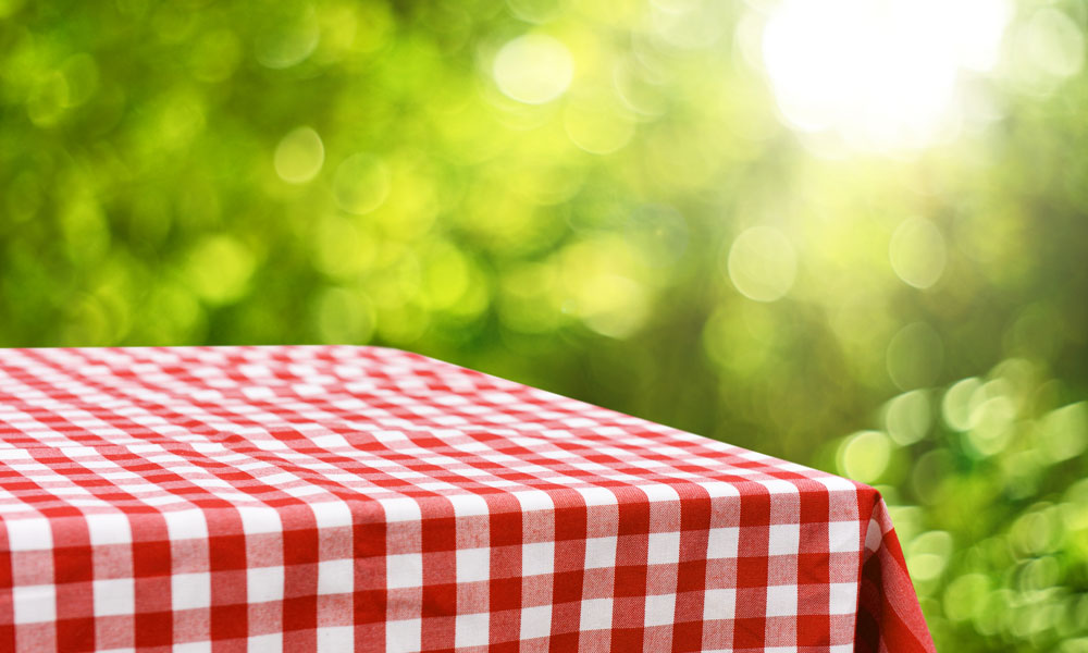 You will want a few key accessories for this. Top of the list is a wipe-clean vinyl tablecloth. Constantly cleaning an outdoor table is a pain but using a wipe clean tablecloth means you don’t need to. And if there is a sudden shower, you can simply leave it there until it stops and wipes it dry.