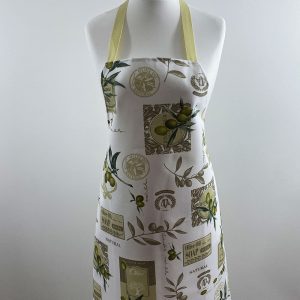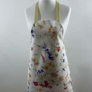 This apron has an adjustable neck strap and a waist tie. It is also durable thanks to its practical, wipe clean coating.