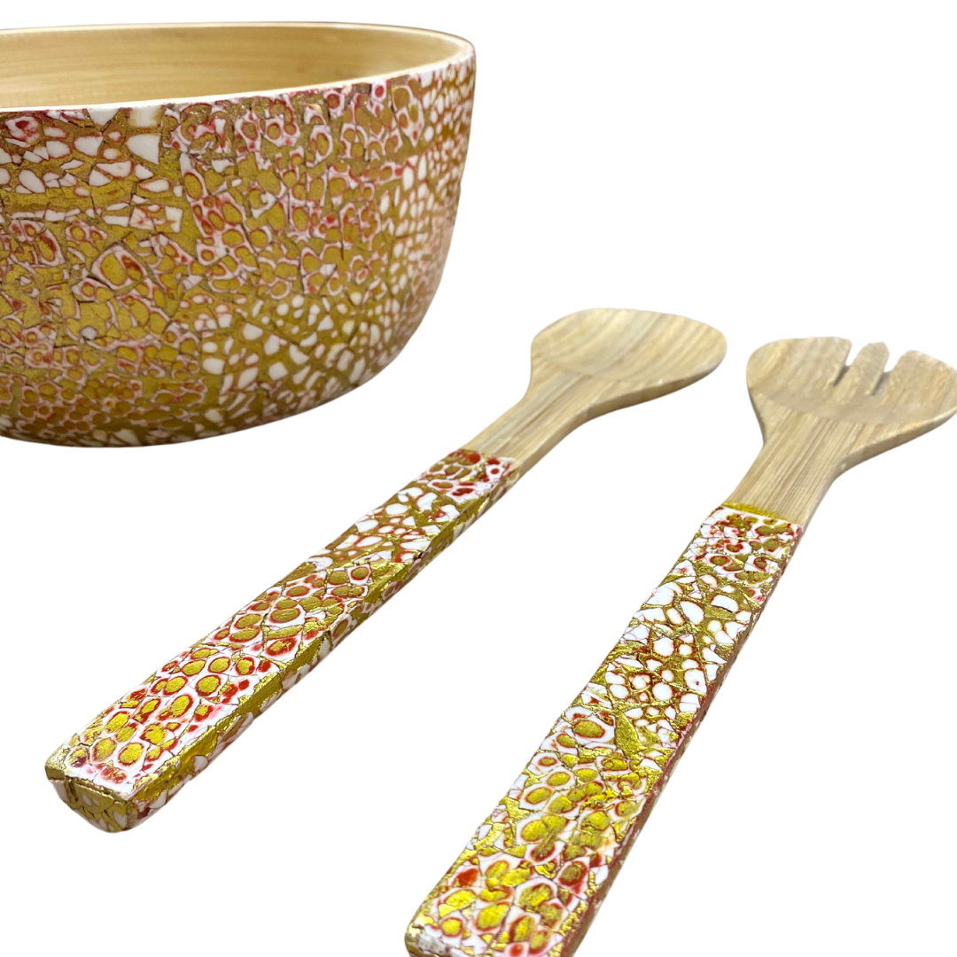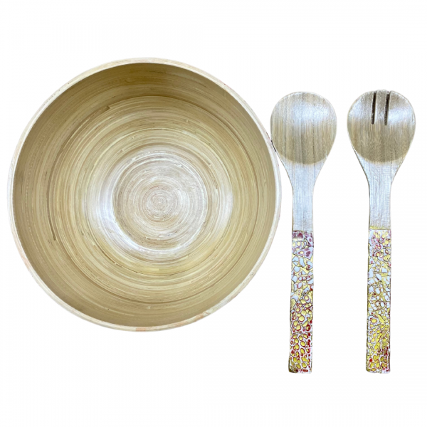 Vie Pink And Gold Bamboo Salad Bowl & Servers are also available in White and Green.